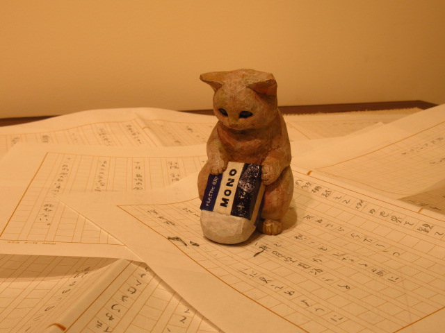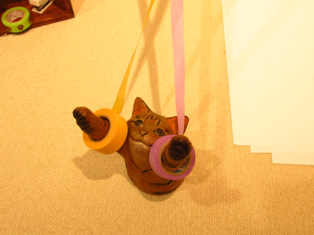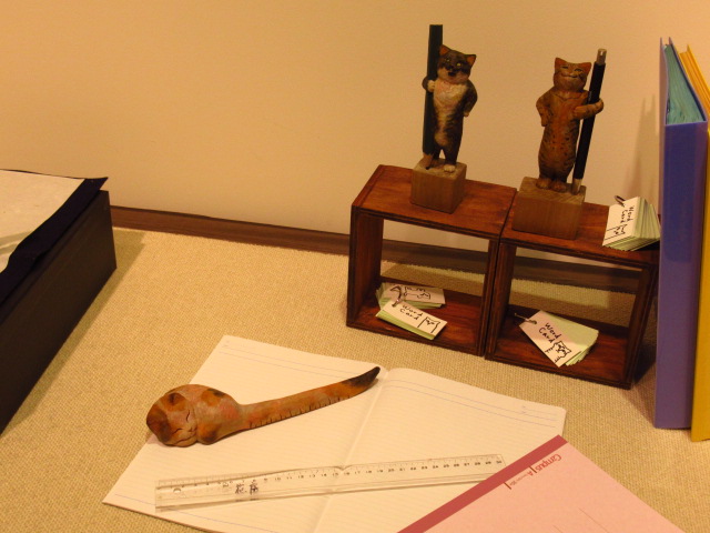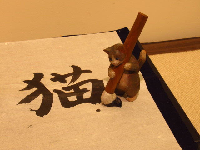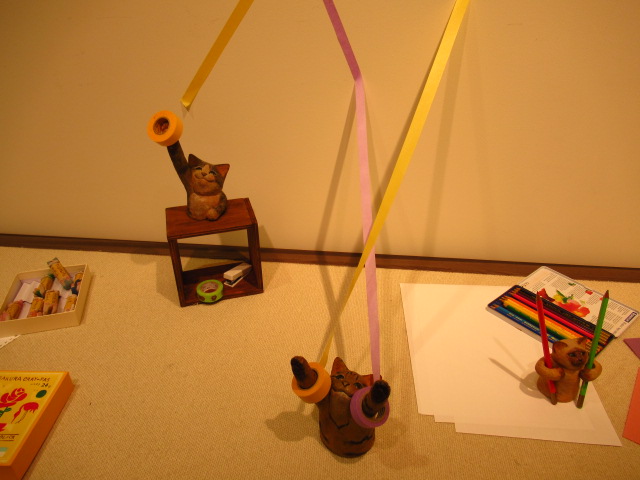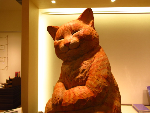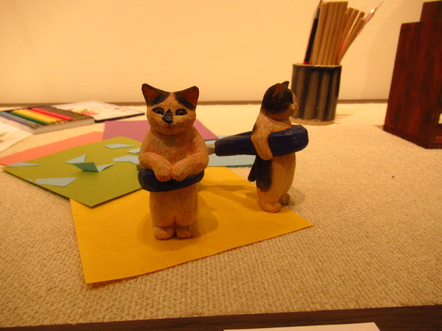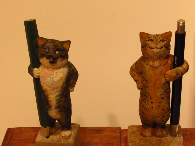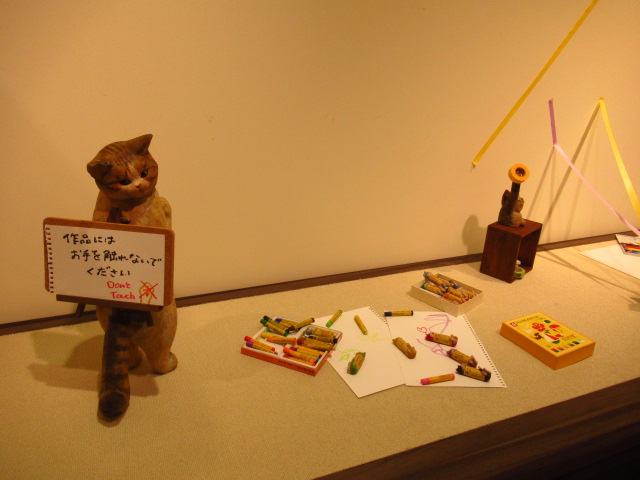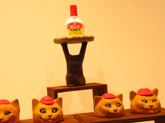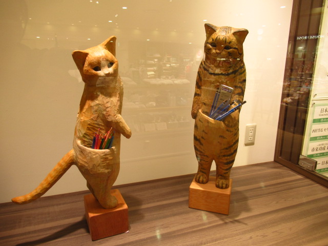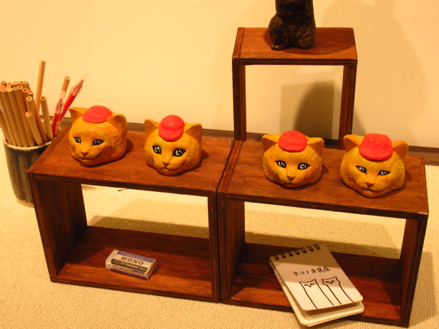 店主はねこ? 大阪で、くすっと笑える文具ねこの木彫展