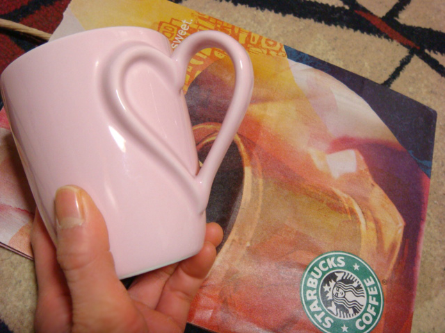 「STARBUCKS」の、バレンタイン限定のハートハンドルマグですv