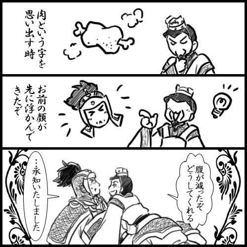 許褚さん→肉、というお答えが嬉しくて…(´∀`人*)