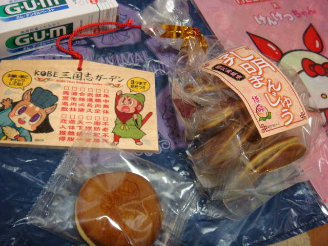 孔明わんをプリントしてあるどら焼。義兄弟風味ってことで、桃味w