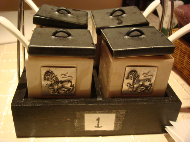 左上から唐辛子、ナンプラー、砂糖、お酢。