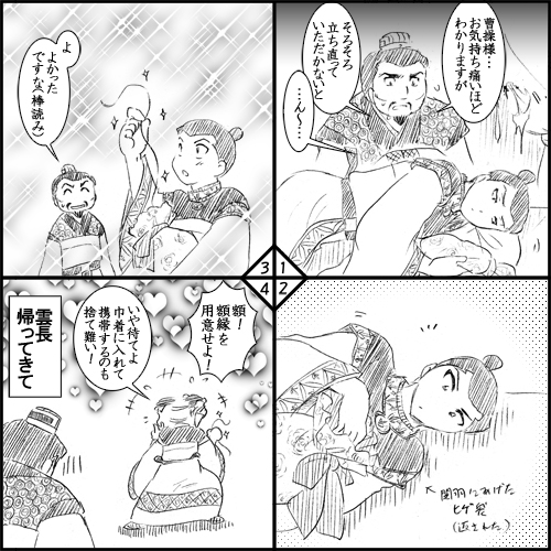 そんなとんだありがた迷惑と、甘糜両夫人の涙に辟易した関羽は、