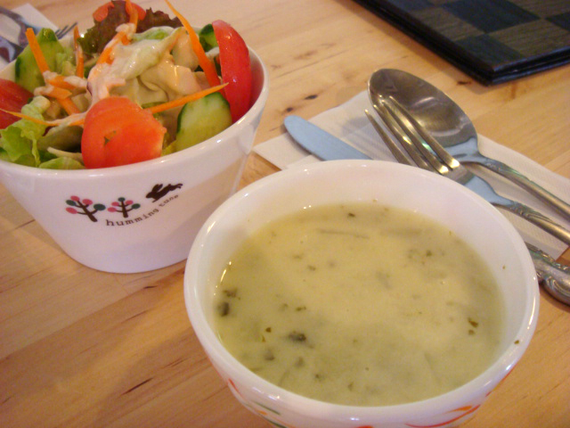 こちらはサラダとバーリースープ(押麦と牛乳のスープ)。