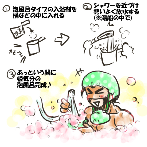 固形タイプの泡風呂入浴剤に載ってたこちらの泡立て方。