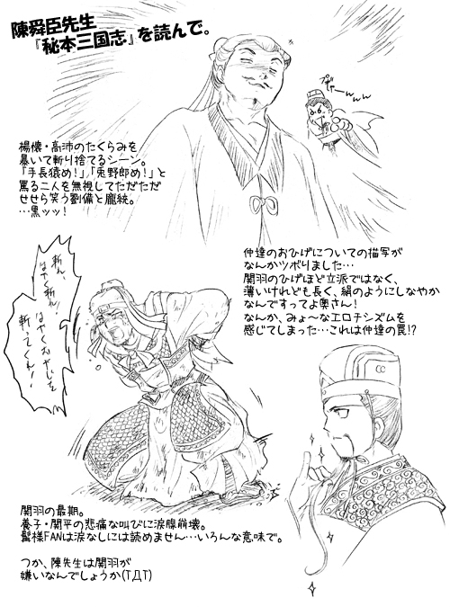 仲達のおひげのところで、「関羽のひげは剛毛」とも(笑)