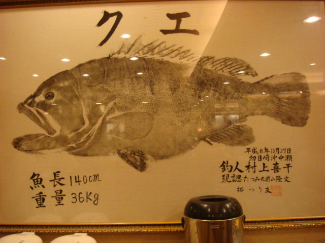 ひとまず、レストラン内のクエの魚拓がすごかったのでぱしゃりとなw