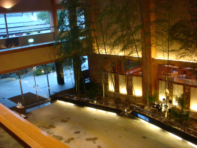 昨夜撮った外の一角と、朝に撮った二階から見たロビー。ここにもパンダv