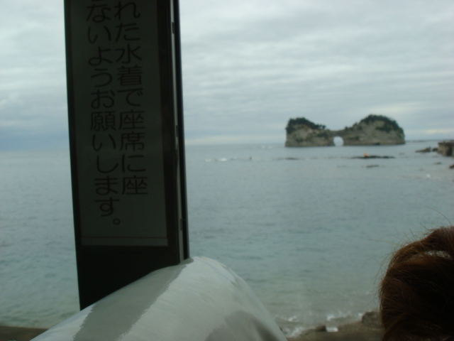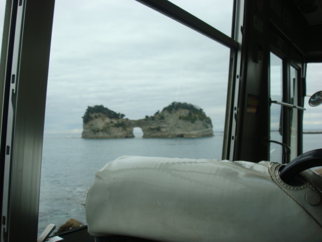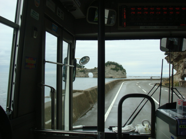 バスで駅に向かう途中、おおお!あの円月島が迫ってくる!!
