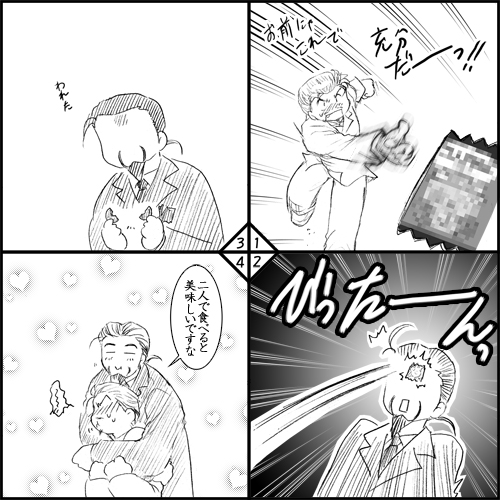 ほんとは一コマ目、チョコのパッケージ絵はてきとーに描くつもりだったですよ。