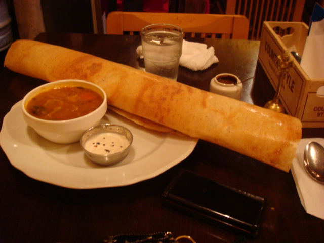 クレープこと、ドーサ(米と豆のクレープ)がお皿の何倍もあるのは想定外DEATH☆