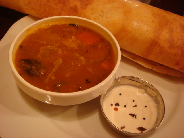 横の小皿はココナッツのチャツニー。