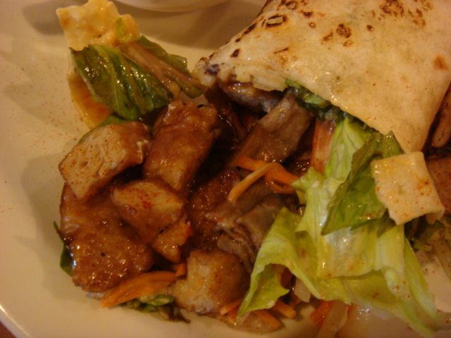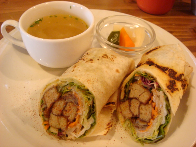 たっぷりの野菜といっしょにトルティーヤで巻きました。(メニューより)」