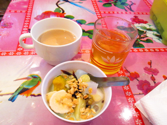 コーンフレーク、グラノーラ、ピーナッツの甘露煮、ココナツミルク、シロップ…と、