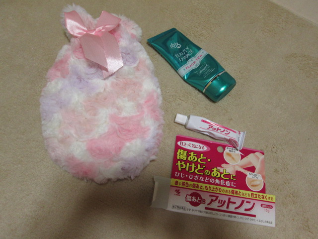 右は、母がくれたミニゆたんぽ、袋がとってもガーリーv