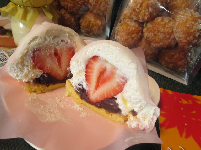 たくさんの生クリームと、苺やあんこ等を全てほおばると