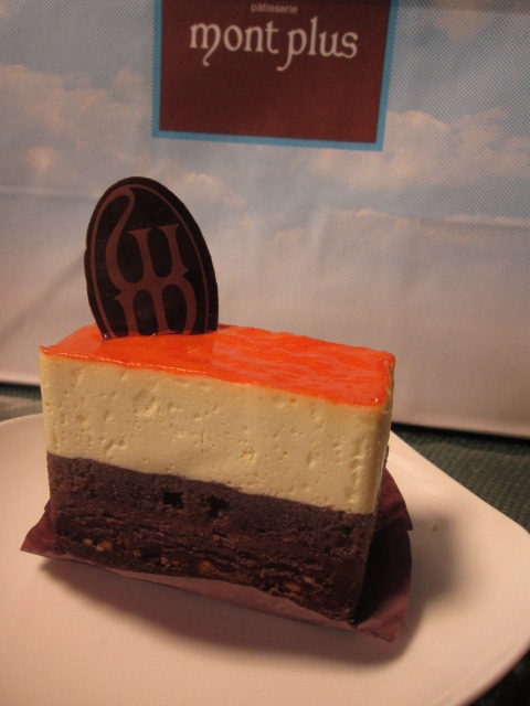 上からカカオ豆のバヴァロワ、ショコラ・ビスキュイ、