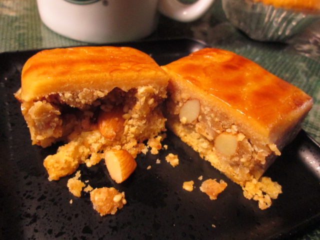 左・中:『伍仁夾心餅』(五目ナッツミックス餡入り月餅)