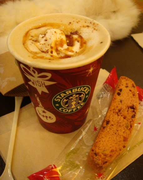 いつもならマグにいれてもらうのですが、クリスマスな紙コップ見たさにこちらにv
