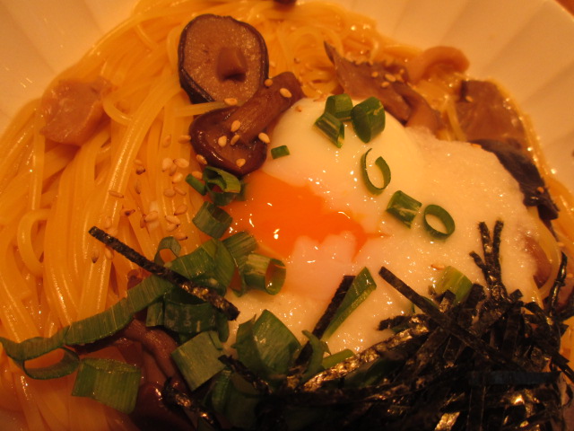 『大和芋ととろろ きのこ 温泉卵のおだし和パスタ』