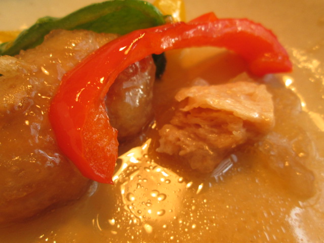 大豆ミートかな、中は層になっていて、食感が面白いです!