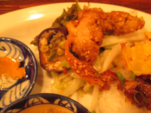 ベトナム風揚鶏肉・ナス豚肉詰め。食べなじみのある味で、これまたおいしかった!