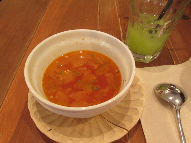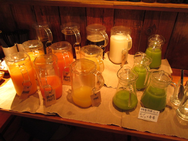 ドリンクバーには、緑色のジュースが♪春菊とグレープフルーツだと!?