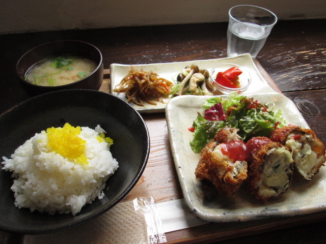 おかずは、きんぴら、三つ葉の煮びたし、パプリカのおかか和え(でいいのかな?)。