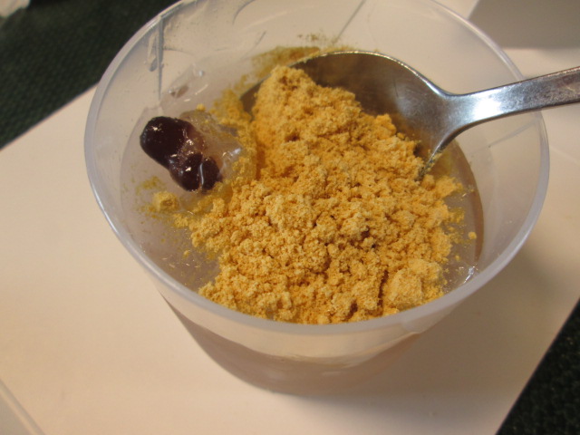 丸いカップの中で、わらびもちが逃げるので、ちょっと食べにくかった(汗)