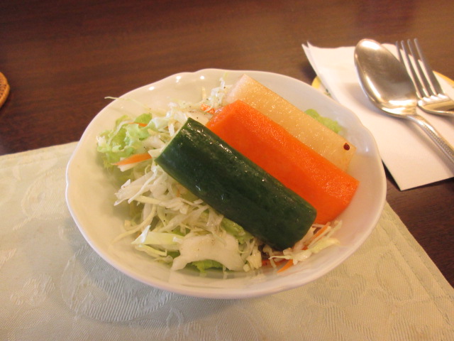 サラダの上のピクルスがインド国旗!とグルメサイトで