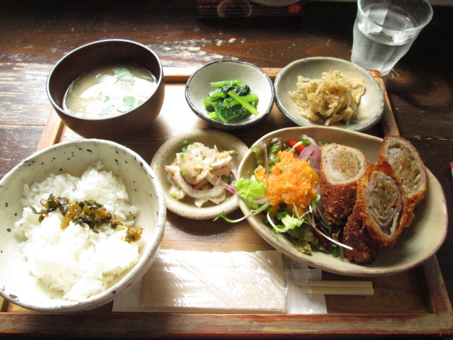 メインは豚肉できんぴらを巻いて揚げたフライ☆