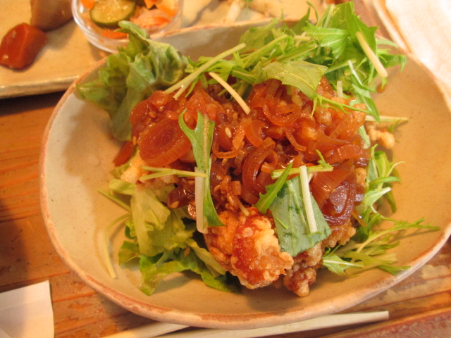 中華の甘酢のような酸っぱい葱たっぷりのソースが嬉しい♪