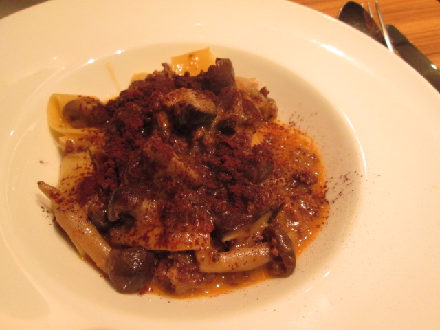 『カカオ風味のキノコのボロネーゼ 自家製手打ちパッパルデッレ』