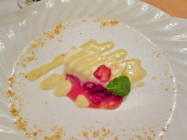 デザートは、なんと、パンナコッタでいちご!パンナコッタでいちご!(二度言った)