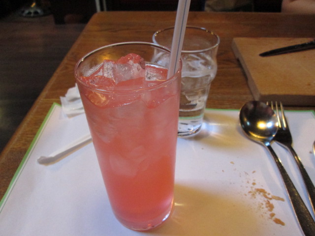 ドリンクはピンクレモネード。微炭酸で爽やかな味と色合いにすっきり!