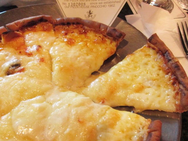 このピノッキオピザは、ホワイトソースとモッツァレラチーズのシンプルなピザ。