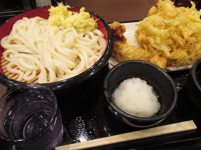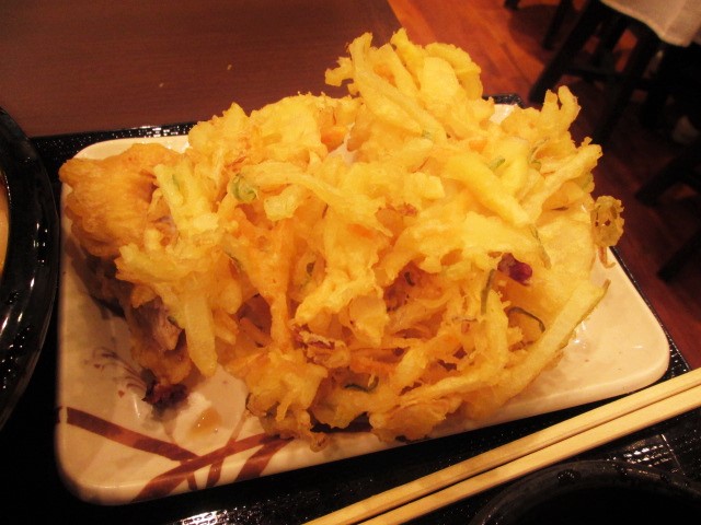 大根おろしと、かしわ天、野菜かき揚げ(揚げたて)、生姜たっぷり♪