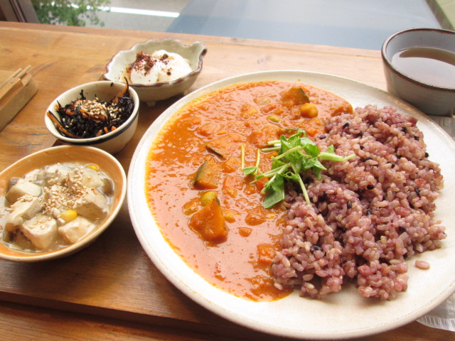 でも、程よくピリ辛の野菜たっぷりカレー+ヘルシーご飯は