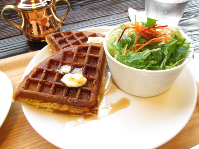 しゃきしゃき新鮮サラダ、ほかほかワッフル、