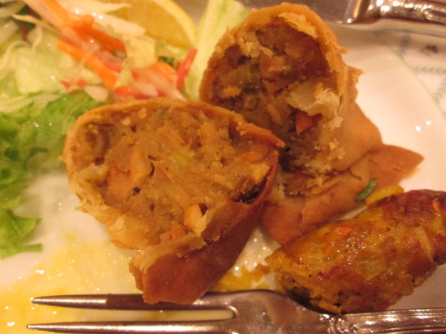 次にサラダと、サモサ(野菜揚げ餃子インド風)、