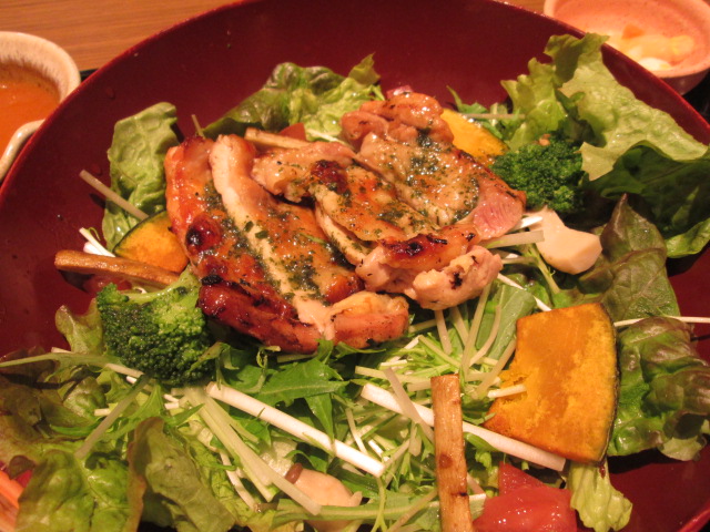 芳ばしく炙られた鶏ももに、香り豊かなバジルソースが爽やか!