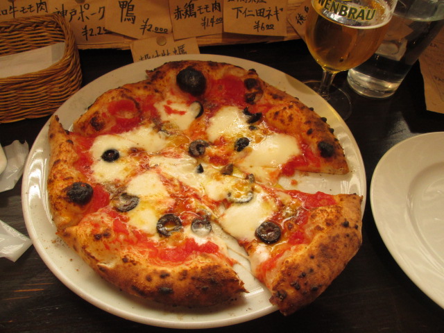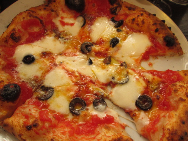 トマトベースのソースとモッツァレラ、アンチョビ、オリーブ。