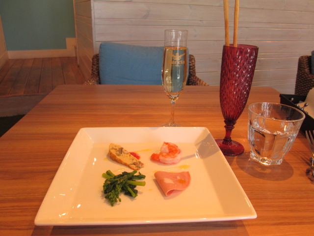 まずはスパークリングワイン(追加ドリンク)とお通しのグリッシーニ、