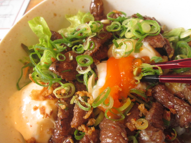 卵黄、めっちゃ色濃い!甘辛お肉にとろりと絡めて食べたら、もう至福v