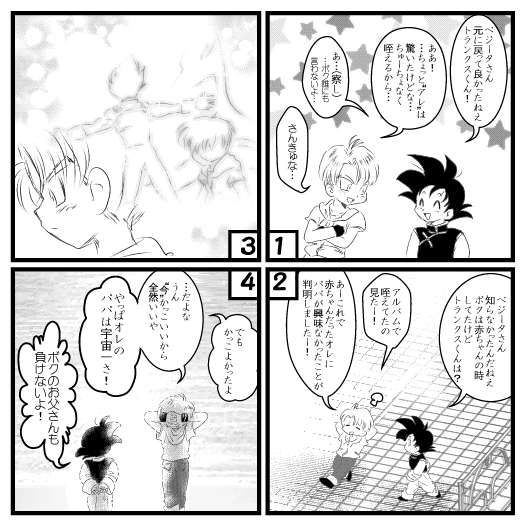 『DRAGON BALL超』より、悟天、トランクス、ベジータ。
