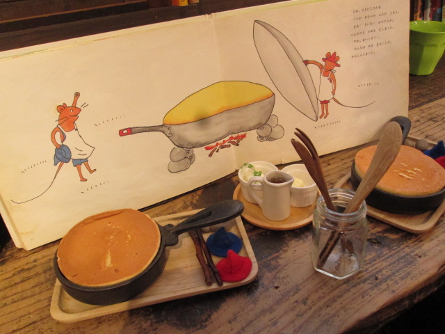 小さなスキレットに、ふっかふかホットケーキ、可愛らしいお帽子が横にv
