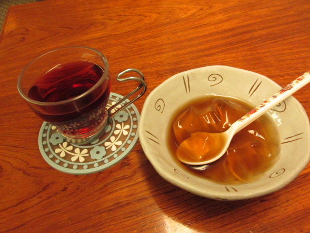 最後はローズヒップティーと黒糖ほうじ茶ゼリーのサービスですv