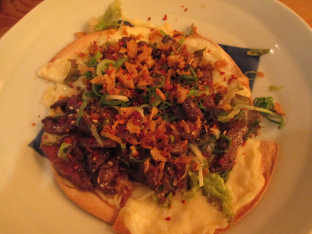 鹿肉とレタス、ネギ、揚げ玉ねぎがどどんとのってて旨かった…