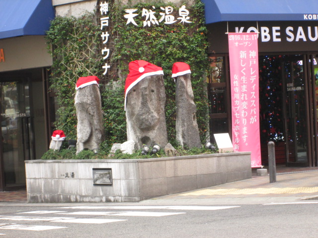モアイ?サンタちっくな石像ちゃんは、某スパ前にて♪