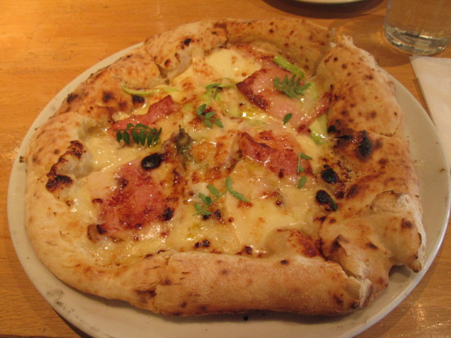 真ん中のピザは、筍と木の芽がトッピングの、白味噌仕立てのピザ。旨かったー!