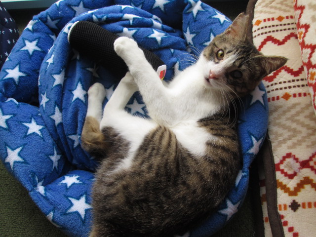 可愛いサビ猫ちゃんが、抱っこしてもめっちゃくつろいでくれて
